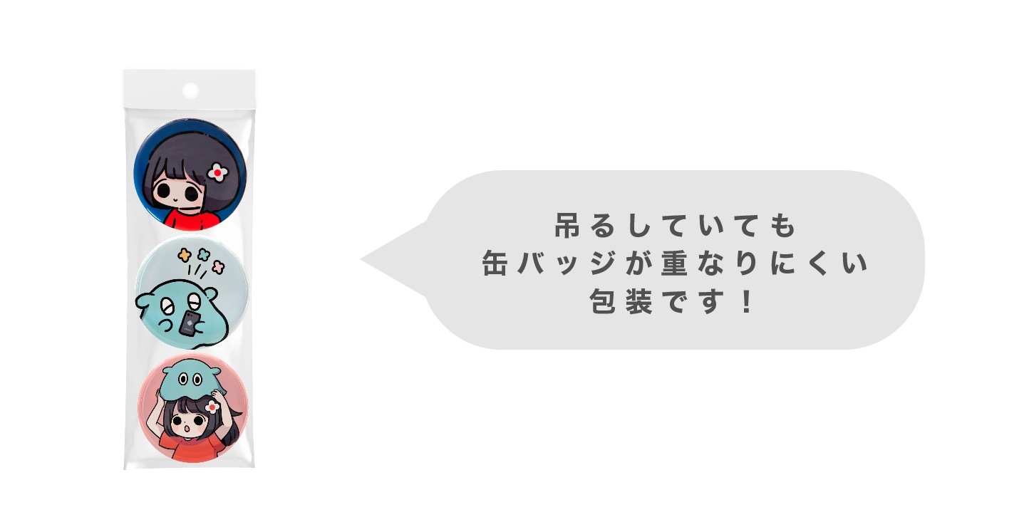 包装に使用するOPP袋を缶バッジと同梱してお届けします。