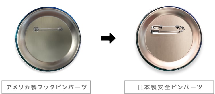 これまで缶バッジに使用されている一般的なフック型ピンでしたが