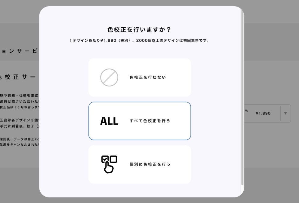 校正保証有効のデザインを2000個/アイテム以上の量産頂く場合