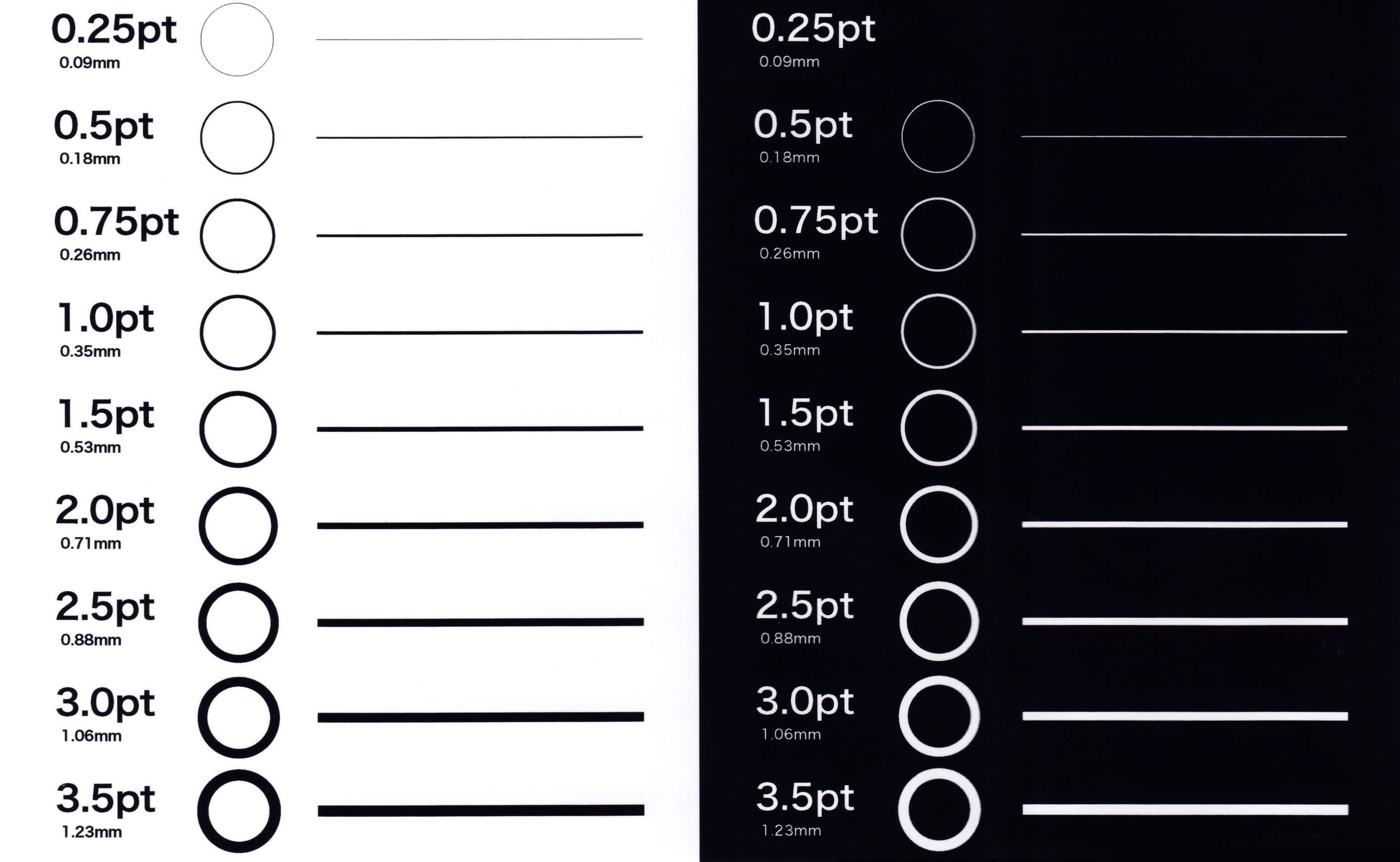 以下は線やテキストを缶バッジ製作時と同じ紙で印刷した際のサンプルです。