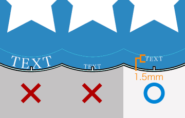 外側に約1.5mmの範囲に文字を収めていただく必要があります。