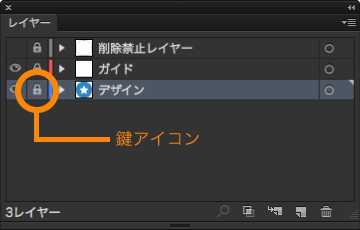 「デザイン」のレイヤーにロックが掛けられている場合は、鍵アイコンをクリックしてロックを解除します。