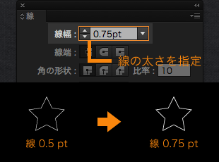 線幅の項目でラインオブジェクトを太くしてください。このとき、「少し太いかな?」と感じるくらいが目安です。